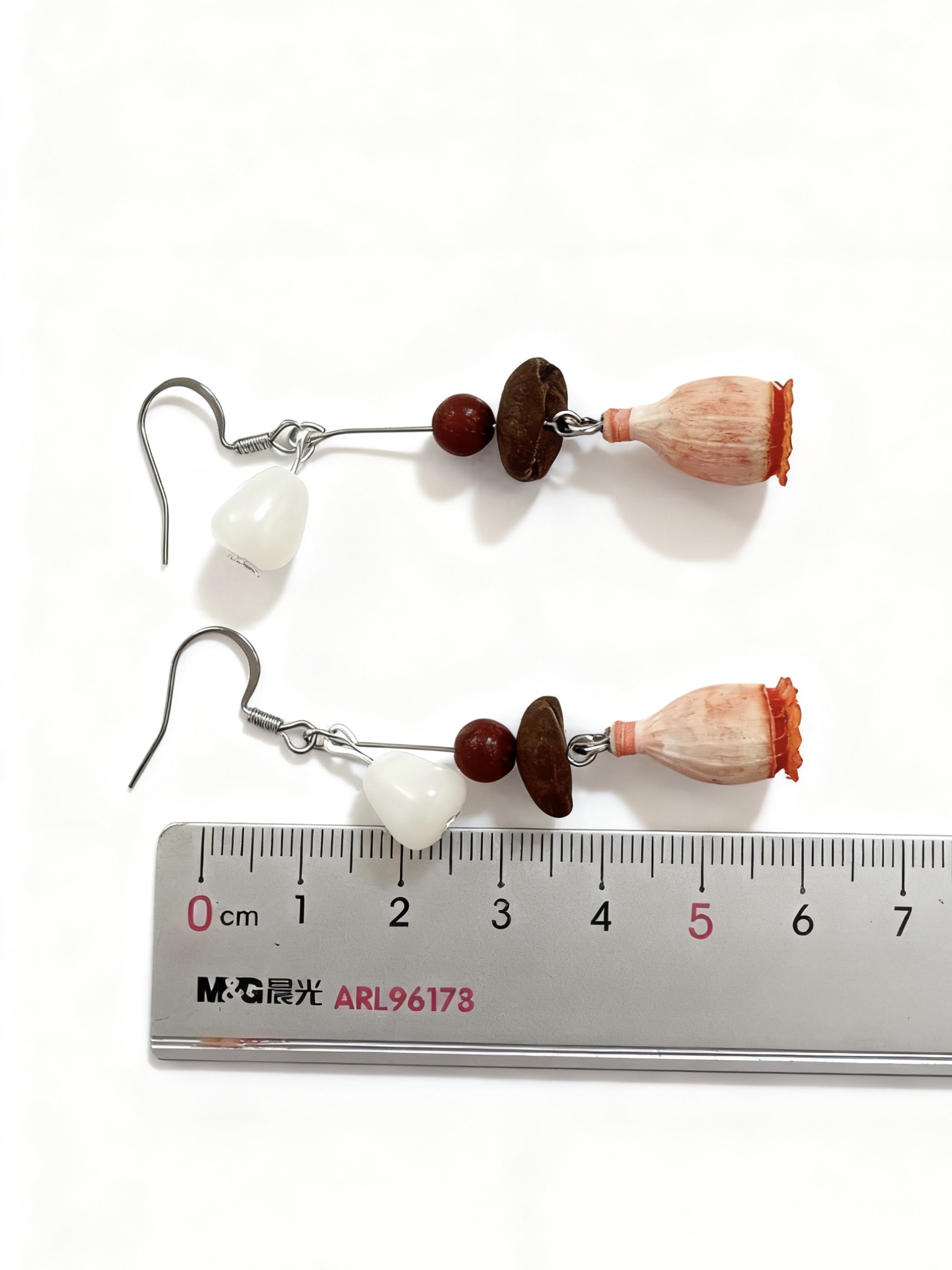 “Whisper of Light” Handmade Earrings — Champagne Poppy · Red Sandalwood · Coffee Bean · White Bodhi