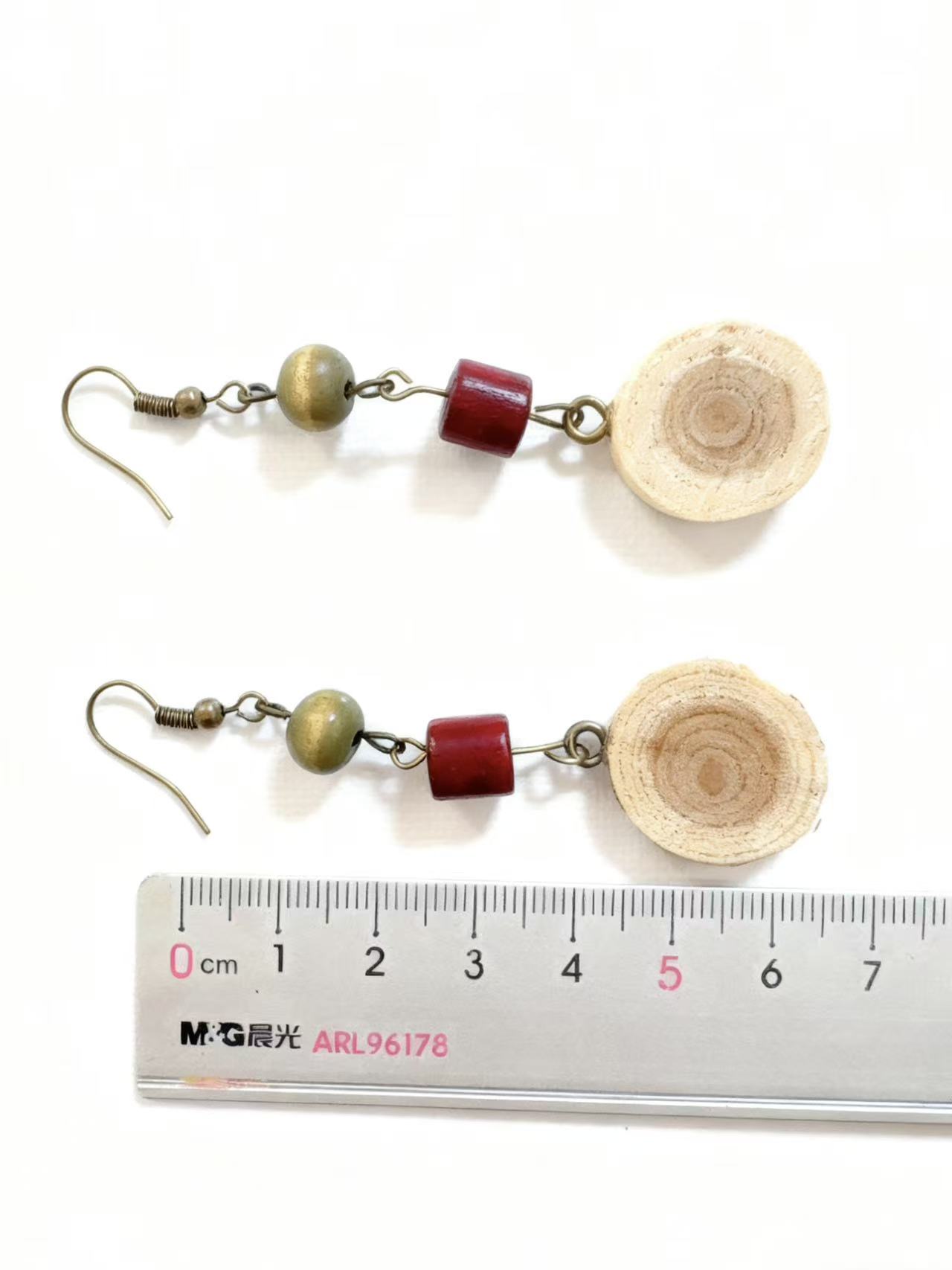 “Deep Forest · Pure Wish” Handmade Earrings — Red Sandalwood · Green Bead · Locust Wood